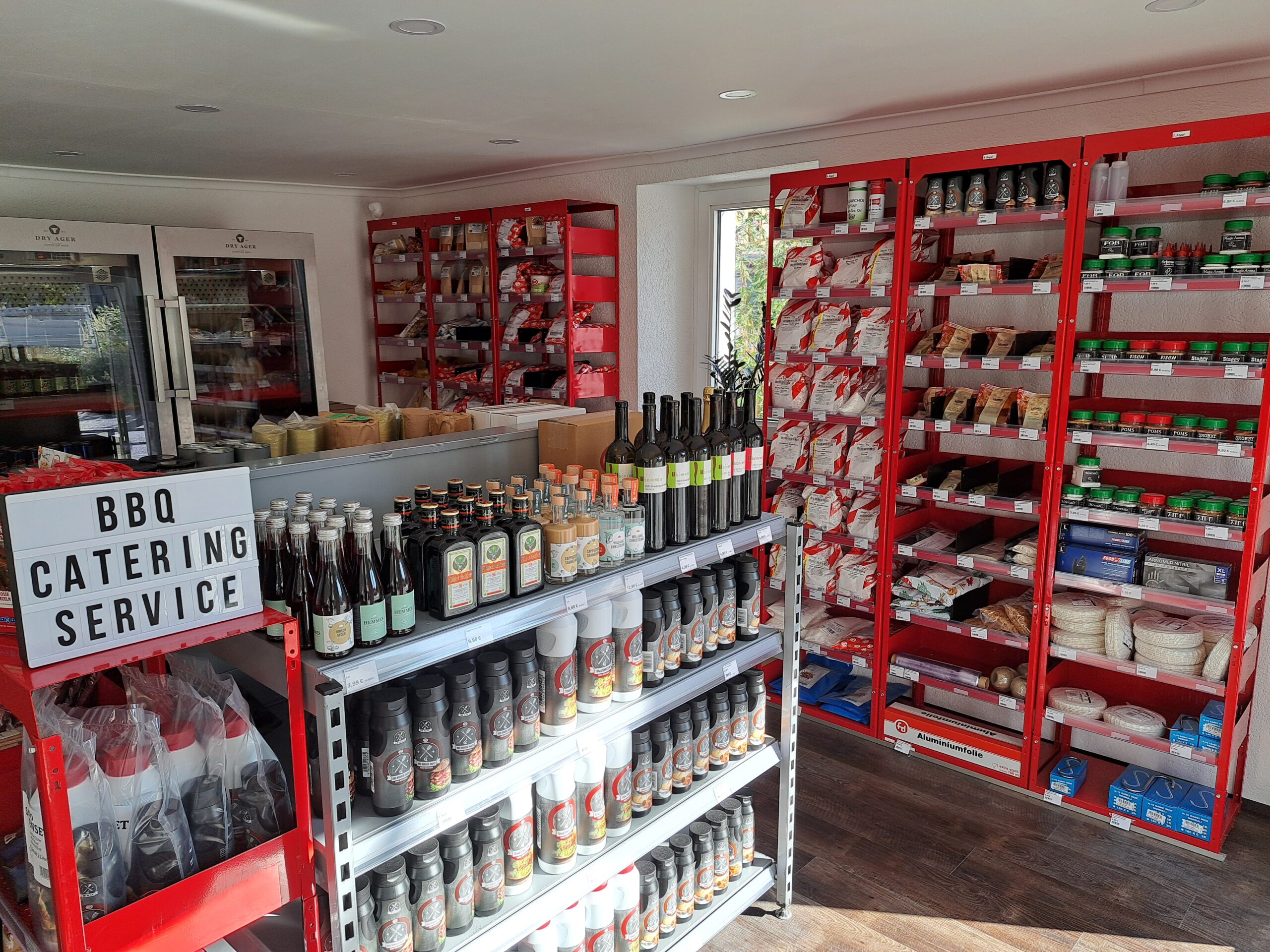 Unsere gesamte Produktpalette, die ihr bisher online bestellt habt – von BBQ bis Metzgerbedarf aber auch Wurst von der Metzgerei Hauck, Spirituosen vom Hofgut Hemmes, Wein vom Weingut Schenkel odereinfach nur Wegzehrung wie Chips und Bier.