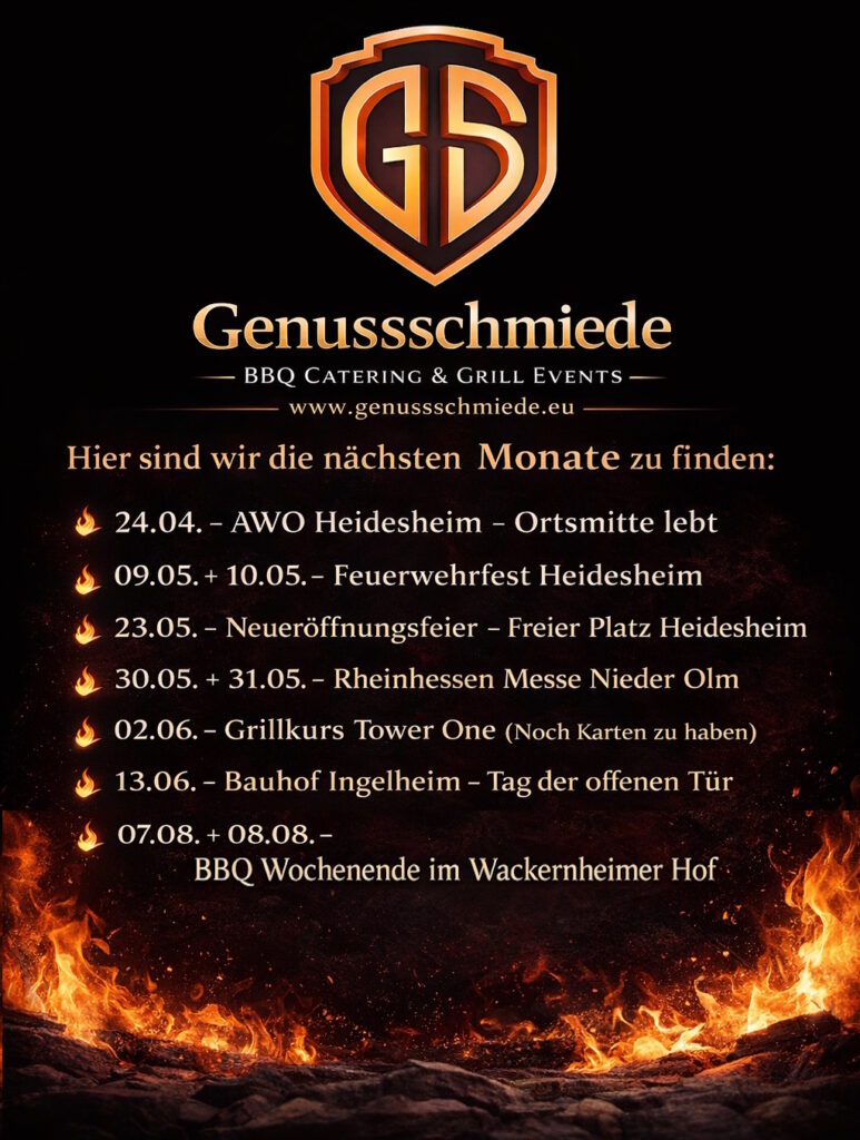 Ob vegetarisch, Dessert (Vizeweltmeister 2023) oder natürlich Fleisch, alles ist möglich. Durch unsere Wettkampferfahrung (Mitglieder der Aartal BBQ Crew) und zahlreiche Titel die wir vorweisen können wissen wir was wir tun und das aus Leidenschaft.